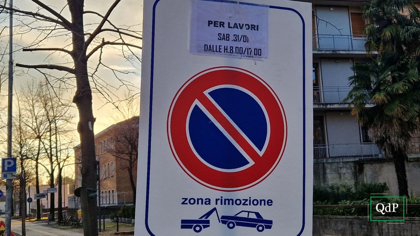 Percorrendo viale Spellanzon oggi era possibile vedere il lato della strada con i segnali che indicavano il divieto di sosta, con rimozione forzata, predisposto dalle 8 alle 17.
