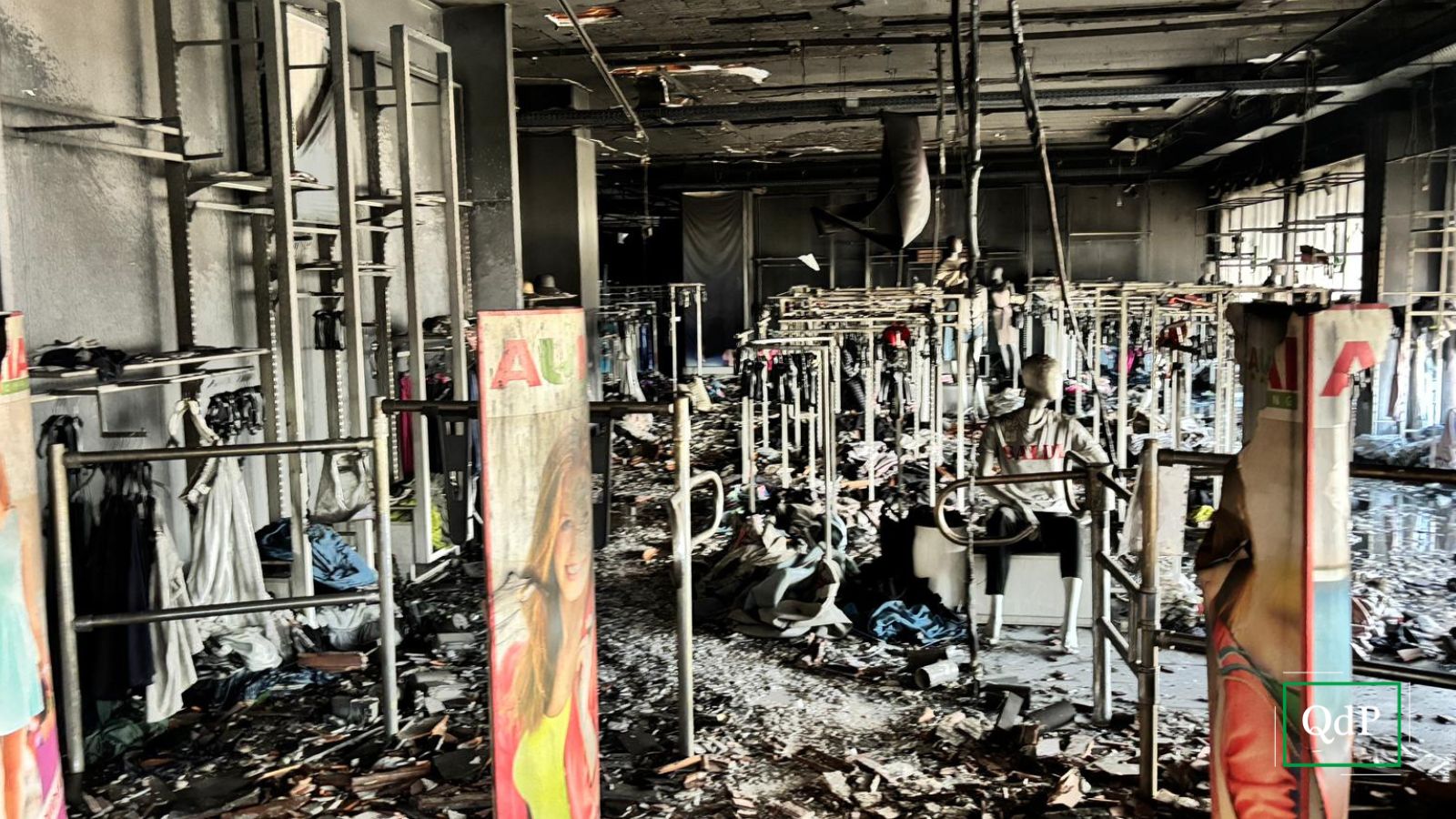 Quasi tutta la merce presente al piano terra dello store è andata bruciata, così come danneggiata è stata anche una parte del solaio il cui materiale è caduto a terra. Nell’aria, soprattutto all’interno, è ancora persistente un forte odore che rende la zona molto attenzionata anche per quanto riguarda la qualità dell’aria con Arpa che ha fatto alcuni campionamenti.