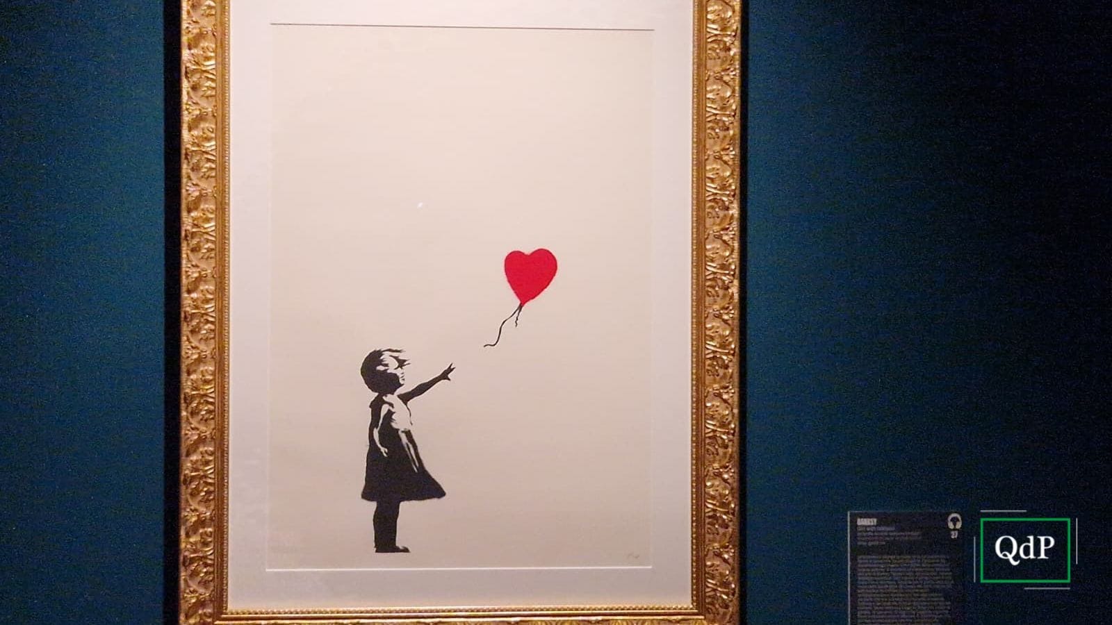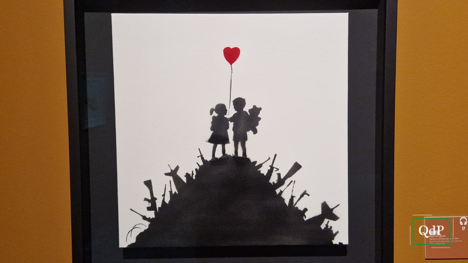 Ma sono presenti anche riferimenti alla guerra nel Vietnam e immagini diventate icone dell’arte di Banksy, come ad esempio l’opera “Girl with balloon”, risalente al 2002, incentrato sul tema del tempo che scorre, di un’infanzia che fugge via o viene strappata.