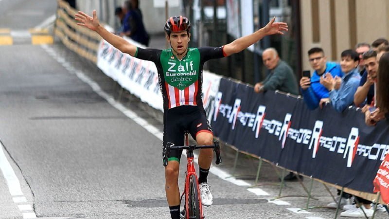 Il giovane ciclista della Zalf Euromobil Désirée Fior ha interpretato al meglio l’impegnativo tracciato di Scomigo vincendolo grazie a una lunga fuga solitaria.