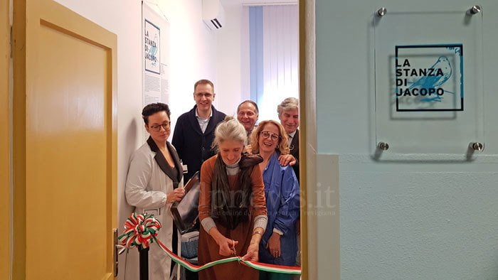 Si tratta della settima aperta in Italia, – due si trovano nell’ospedale di Savona, mentre le altre sono usufruibili a Venezia, Imperia, Mestre e Ancona – grazie all’impegno dell’associazione no profit la Stanza di Jacopo, realtà nata nel 2011 in seguito a una dolorosa esperienza personale vissuta dalla sua fondatrice Fausta Tocchio, oggi presente per tagliare il nastro (nella foto): era il 25 dicembre 2010, quando il figlio 21enne Jacopo Corradi Tocchio morì a causa di una crisi asmatica a Londra, città dove risiedeva da due anni per studio e lavoro.