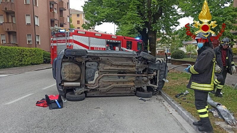 Una Opel corsa si è capovolta sul sedime stradale, dopo essere andata a impattare contro un palo dell’illuminazione, lungo il rettilineo in viale 24 maggio con numerosi danni alla parte anteriore del veicolo.