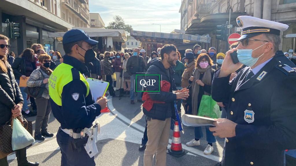 Allo scambio tra autorità e ambulante hanno assistito diversi presenti, sempre più inferociti: aggredendo verbalmente gli agenti della Polizia locale hanno suggerito loro piuttosto di “fare retate al Biscione” o di dedicarsi ai numerosi furti che stanno avvenendo in zona.