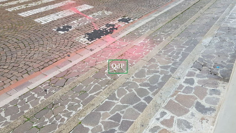 Oltre a ciò, sono visibili i segni di pennarello che imbrattano le mura storiche del Duomo e dei cartelli posizionati lì vicino, che segnalano dei lavori in corso sulla via, come l’intervento del Rotary Club relativo all’operazione di restauro della Sala dei Battuti (leggi l’articolo), oppure un’altra cartellonistica posizionata vicino a Porta Dante, all’imbocco di via XX Settembre, riguardante il recupero delle facciate di Palazzo Carli.