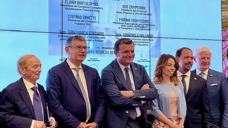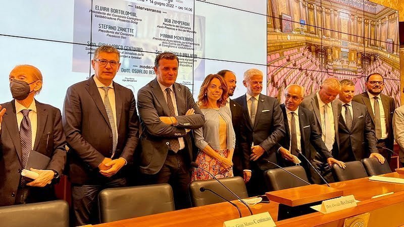 Un’occasione che ha visto riunirsi nella sala Caduti di Nassirya del Senato della Repubblica tutto il ‘sistema Paese’ compatto, dal Sottosegretario alle Politiche Agricole Alimentari e Forestali, Sen. Gian Marco Centinaio al Direttore Generale del Mipaaf, Giuseppe Ambrosio, fino ai principali rappresentanti dei Consorzi di Tutela del Prosecco: Elvira Bortolomiol, presidente del Consorzio Conegliano Valdobbiadene DOCG, Luca Giavi, Direttore generale del Consorzio di tutela Prosecco DOC e Ugo Zamperoni, presidente del Consorzio Asolo Prosecco e Vini del Montello. Moderato dal giornalista Osvaldo Bevilacqua, l’incontro è stato l’occasione per ribadire in modo chiaro la netta contrarietà verso la richiesta della Croazia di far riconoscere la menzione Prosek come legittima, e la forte volontà di tutelare l’eccellenza tutta italiana del Prosecco e delle Colline Patrimonio dell’Umanità.