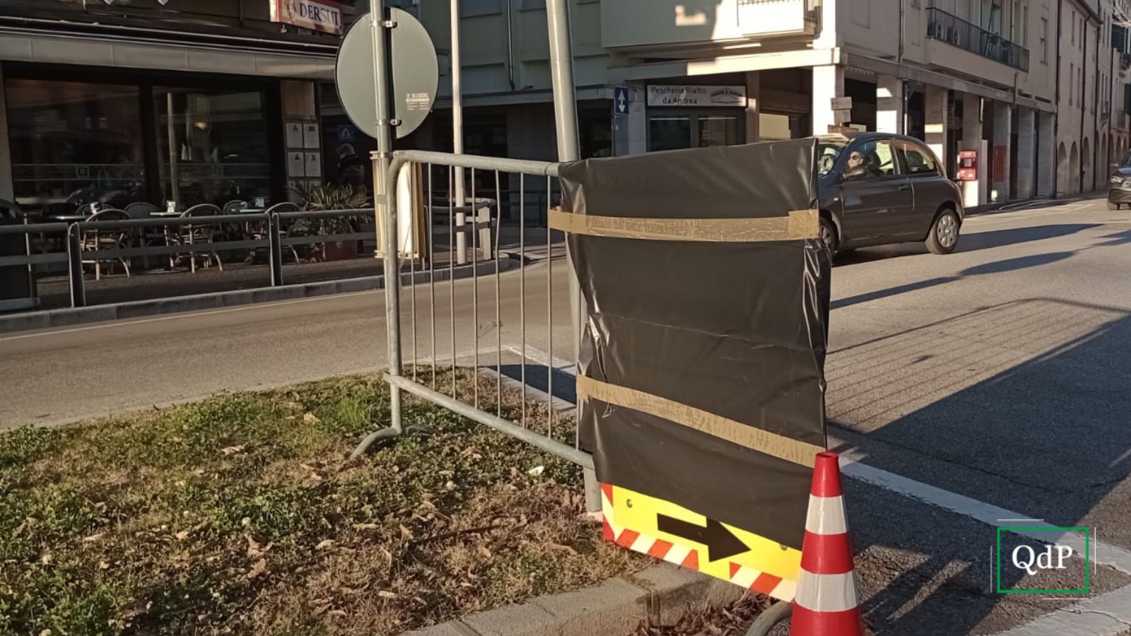I cartelli posizionati nei punti strategici di ingresso alla città di Conegliano, indicanti la chiusura del centro città nel periodo natalizio, sono stati coperti.