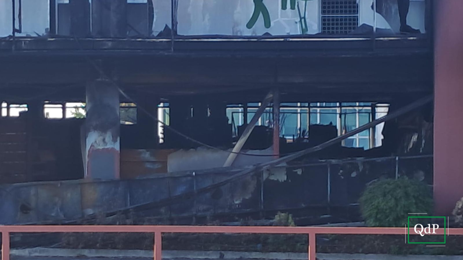 La struttura, da cui esce ancora un po’ di fumo e dell’odore di plastica bruciata, è visibilmente distrutta.