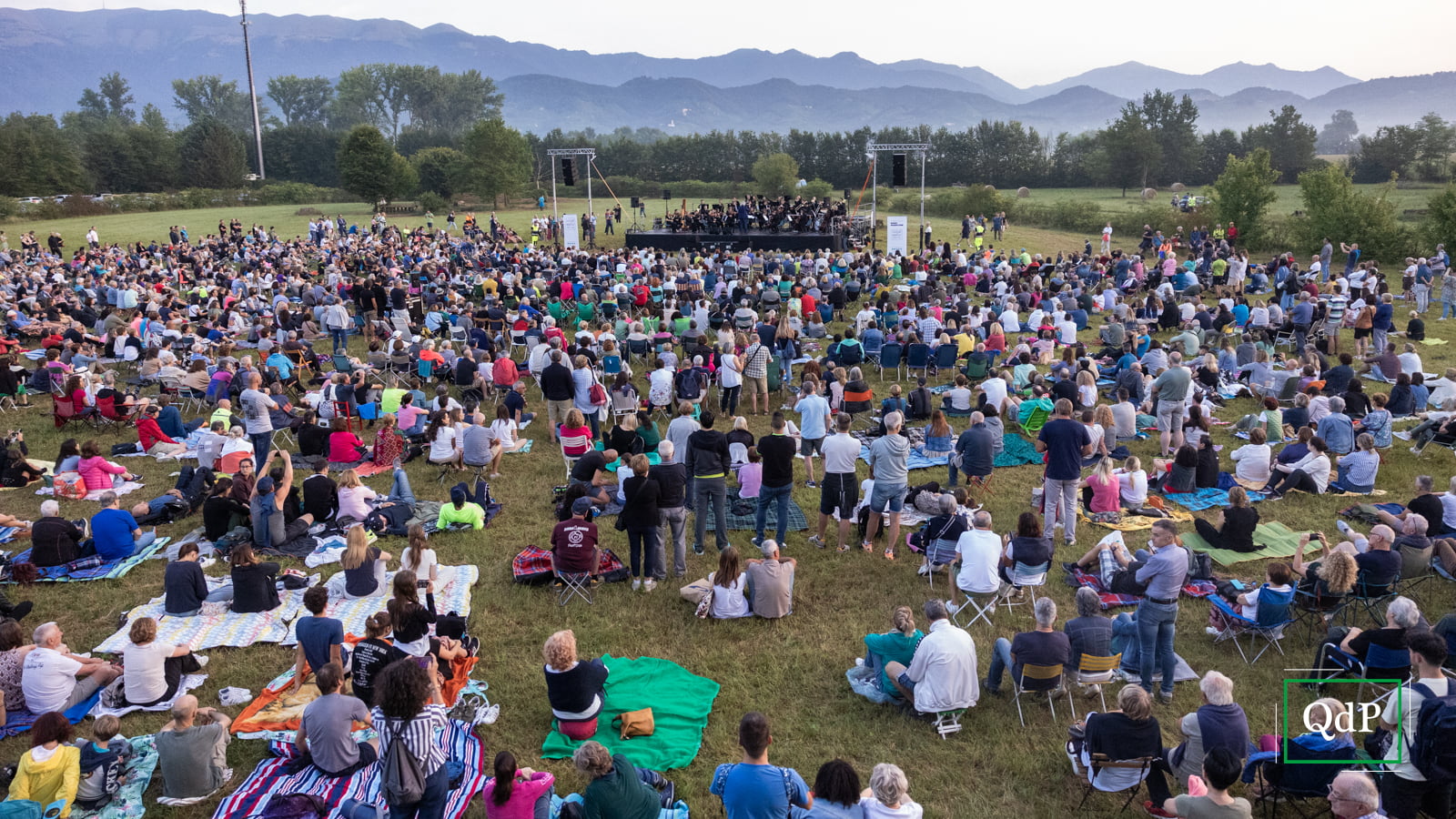 Anziani, adulti, giovani e bambini: tutti arrivati con il proprio telo o sedia da campeggio hanno preso posto in maniera ordinata nell’ampio parco verde ancora umido dalla rugiada estiva e quasi come non si fossero mai svegliati si sono fatti cullare tra le note di Morricone mentre il sole si alzava rosso in cielo davanti ai loro occhi.