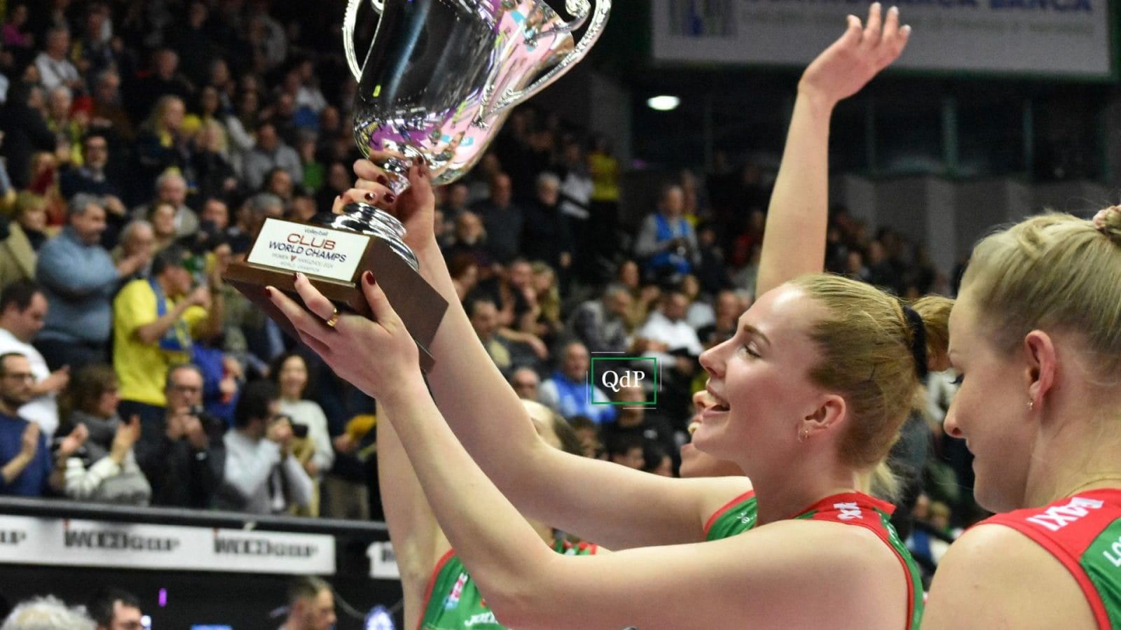 Tutti rivolgono lo sguardo verso il “cubo”, dove in pochi minuti viene sintetizzata per immagini la cavalcata iridata delle pantere, che subito dopo girano tutto il perimetro del taraflex rosa e viola alzando al cielo la coppa tra gli osanna dei presenti, compresi i pochi tifosi presenti anche ad Hangzhou e le autorità (per l’amministrazione comunale coneglianese c’era l’assessore allo sport Primo Longo).