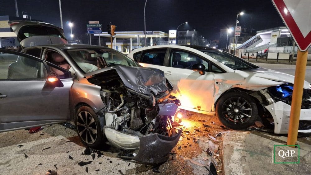 Incidente nella notte di Capodanno a Conegliano, all’incrocio semaforico sulla Pontebbana, tra viale Italia e via Vital, nelle vicinanze del quartiere di Campolongo.