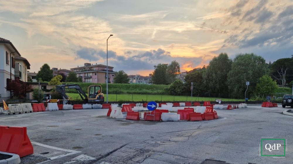 Il cantiere in corso sta provvedendo a rendere definitiva quella rotatoria, togliendo l’arredo urbano che, finora, era stato provvisorio.