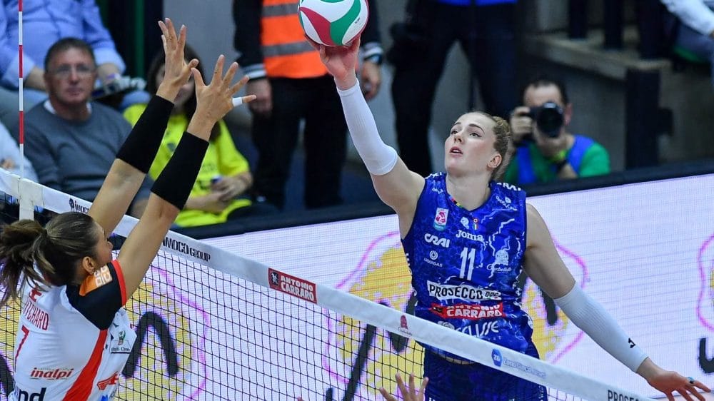 Dei 25 punti del set precedente, la metà (12) li ha portati Haak, che mette a referto un sensazionale 90% di attacchi positivi: il miglior investimento possibile per Wolosz o la regista di turno. Attenzione però alla buona vena di Rivero, che firma un bellissimo ace e porta l’Honda sul 4-2. Nel frattempo, Sillah si è meritata la riconferma in questo set, mentre Haak fa faville anche a muro. Un ace di Wolosz decreta il pari a quota 8, poi Sillah ha ancora il braccio caldo (e preciso) e Bardaro nulla può in difesa: vantaggio Imoco ed espressioni di approvazione quasi incredula quando Bella mette giù il pallone in verticale quasi perfetta. Ace di Fahr, reduce dalla Barcolana, indi Sillah per vie centrali: la slovena sembra volersi candidare a un posto da titolare quanto prima: non sarà facile, vista la “concorrenza” interna, ma Santarelli ha un’alternativa di primissimo ordine in posto 4. Altra prodezza di Bella dai 9 metri, ormai non fa quasi più notizia ma è giusto evidenziare la “totalità” di quest’atleta che poco dopo lascia il posto ad Adigwe (subito a segno, 17-14) nel contesto di un turnover santarelliano che porta sulla ribalta anche Chirichella, anch’essa tosto marcatrice. Sillah è scatenata, Salvagni chiama tempo perché vede le avversarie fuggire di nuovo. La slovena firma il 23-18, la voglia di festa per il Grande Slam promessa nel dopo partita aumenta. I matchball sono 5 dopo un muro di Fahr, la bottiglia la stappa – dopo un time out chiesto da Santarelli e un prolungamento ai vantaggi forse figlio di un clima festoso iniziato un po’ troppo presto – un attacco fuori misura di Rivero.