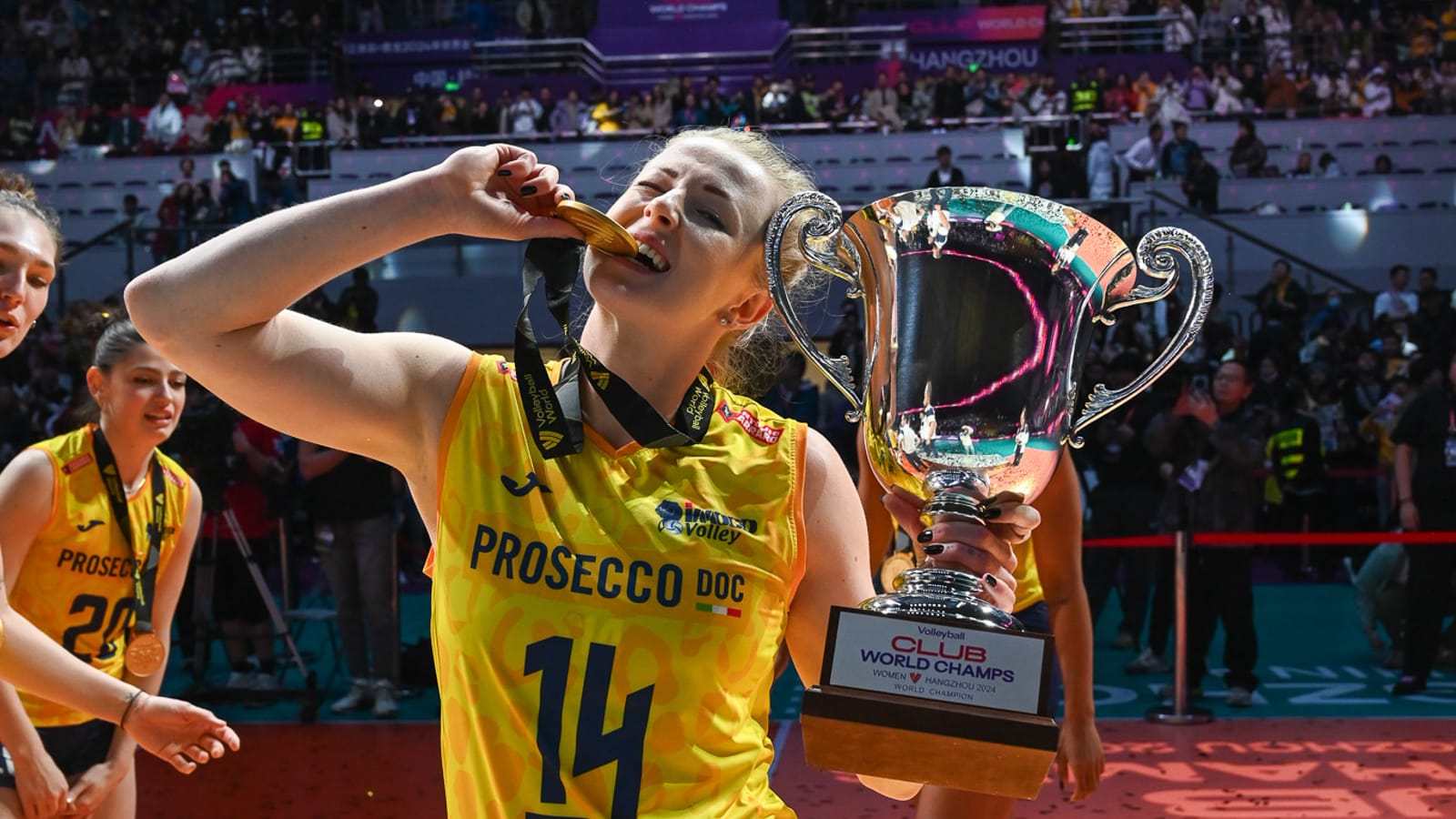 Non c’è partita, non c’è torneo, non c’è storia: il 2024 perfetto della Prosecco Doc Imoco Volley Conegliano porta in bacheca anche il titolo mondiale, il terzo per il club coneglianese, a tutti gli effetti leggenda vivente della pallavolo italiana e internazionale. A Hangzhou, nella finale iridata odierna, le pantere si sbarazzano in tre set anche del Tianjin Bohai Bank, sollevando l’ennesimo trofeo, che verrà senza dubbio adeguatamente celebrato a Santo Stefano dopo il match interno di campionato contro Talmassons.