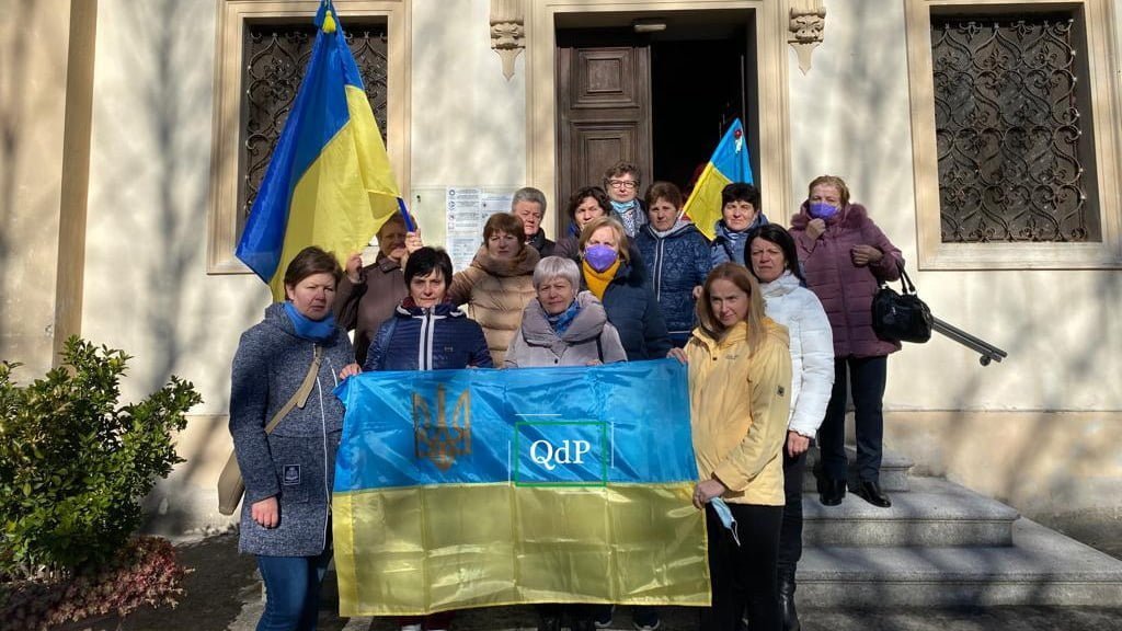 Le anima la speranza che la pace si affermi presto e che l’Ucraina, la loro patria, torni ad essere un Paese libero e senza guerra, come testimoniano le bandiere che stringono forte e mostrano con orgoglio.