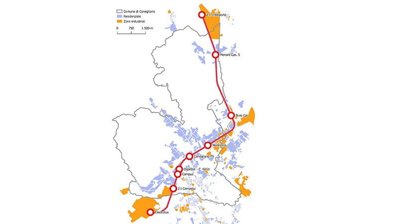 Il gruppo, inoltre, ipotizza un sottopasso ciclabile e pedonale che unisce i due ospedali cittadini e la casa di riposo, una fermata in via Calabria a servizio degli istituti Itis, Cerletti e Da Collo (istituendo un servizio mensa e degli alloggi a disposizione sia di studenti e lavoratori al centro Toniolo), ma anche della zona industriale Campidui, dell’area dell’Electrolux di Susegana, fino alla zona industriale di Santa Lucia di Piave.