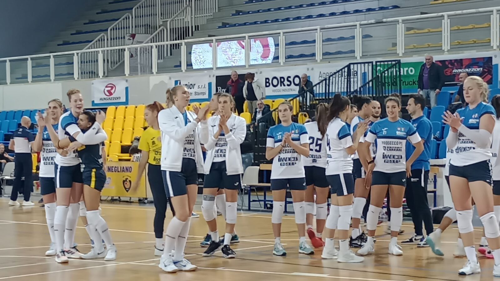 Proprio la contemporaneità con la fase finale del Campionato del mondo ha privato e priverà per tutto il weekend la Prosecco Doc Imoco di diverse titolari. Al palleggio delle campionesse d’Italia ha esordito la giovanissima Angela Coba, essendo Roberta Carraro rimasta in tuta e in panchina per tutto il match e in attesa del rientro della titolarissima Asia Wolosz, che ha portato la sua Polonia fino al quarto di finale mondiale. Si sono viste, in compenso, le nuove attesissime pantere Isabelle Haak, Alexa Gray e Federica Squarcini, che insieme al libero Ylenia Pericati sono entrate da poco a fare parte della rosa agli ordini dei coach Santarelli e Valerio Lionetti.