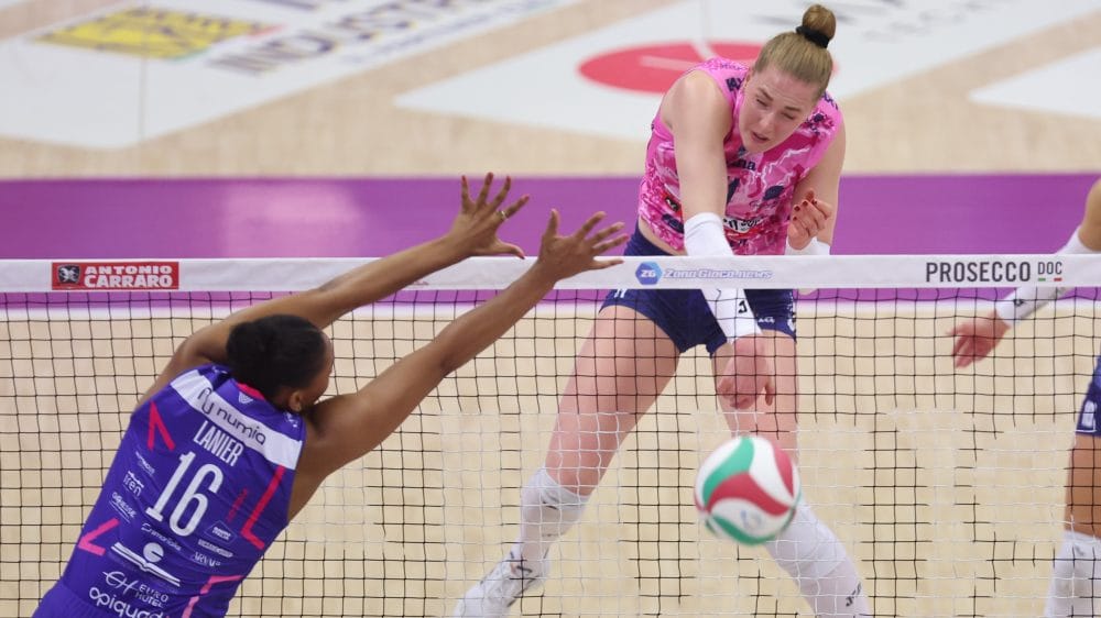 PROSECCO DOC A. CARRARO IMOCO VOLLEY 3 – NUMIA VERO VOLLEY MILANO 1 (25-17, 23-25, 25-23, 25-21). Durata set: 22′, 30′, 28′, 24′. Totale: 1 ora e 44 minuti. Mvp: De Gennaro. Top scorer: Haak (26. Egonu 25). Arbitri: Pozzato di Bolzano e Luciani di Chiaravalle