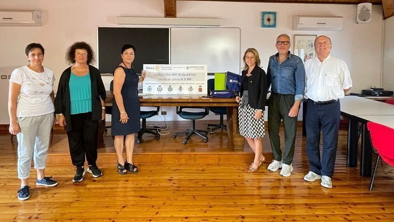 Attivissimo in questo senso anche il Rotary Club di Conegliano: la presidente Stefania Campodallorto ha voluto dare continuità all’impegno del Club che da 15 anni, in occasione dell’inizio della scuola consegna al sindaco della città del Cima 45 kit completi di tutto il necessario per l’inizio dell’anno scolastico (matite, penne, raccoglitori, pennarelli, gomme, colori, quaderni e materiali vari).