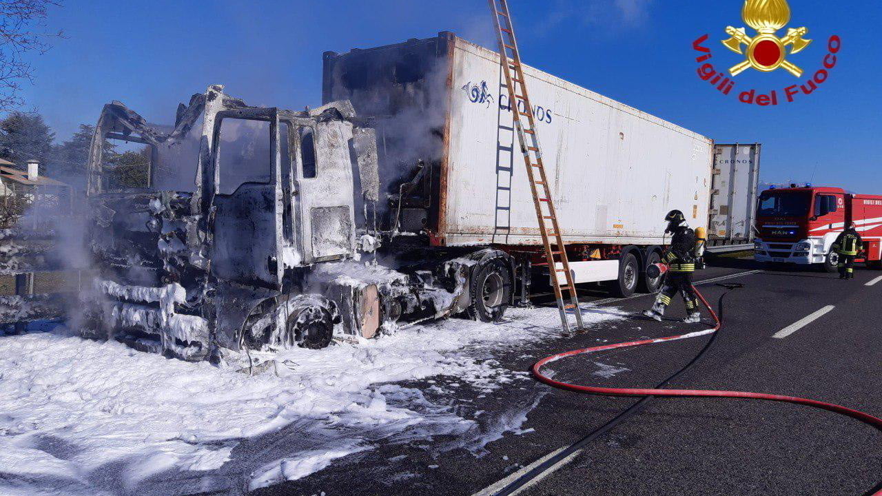 Provvidenziale la prontezza dell’autista che è riuscito a fermare il camion lungo la corsia di emergenza, uscire dall’abitacolo di guida e mettersi in salvo.