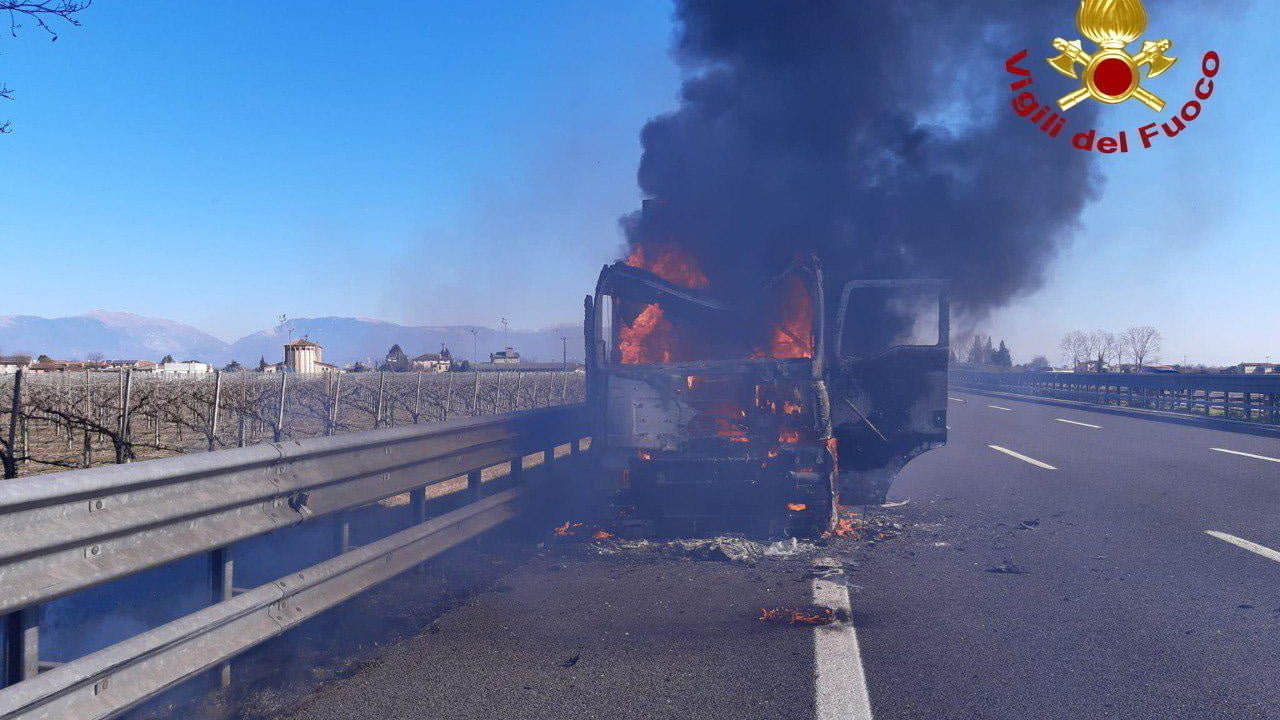 Il mezzo pesante stava procedendo in direzione di Venezia quando, all’altezza del chilometro 33+400 tra i caselli di Conegliano e Treviso Nord, dalla parte frontale della cabina di guida hanno iniziato a uscire del fumo prima e successivamente le fiamme.