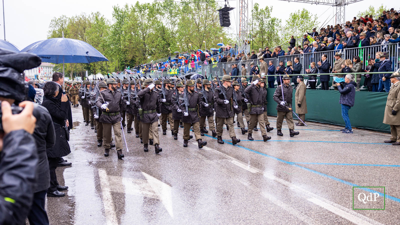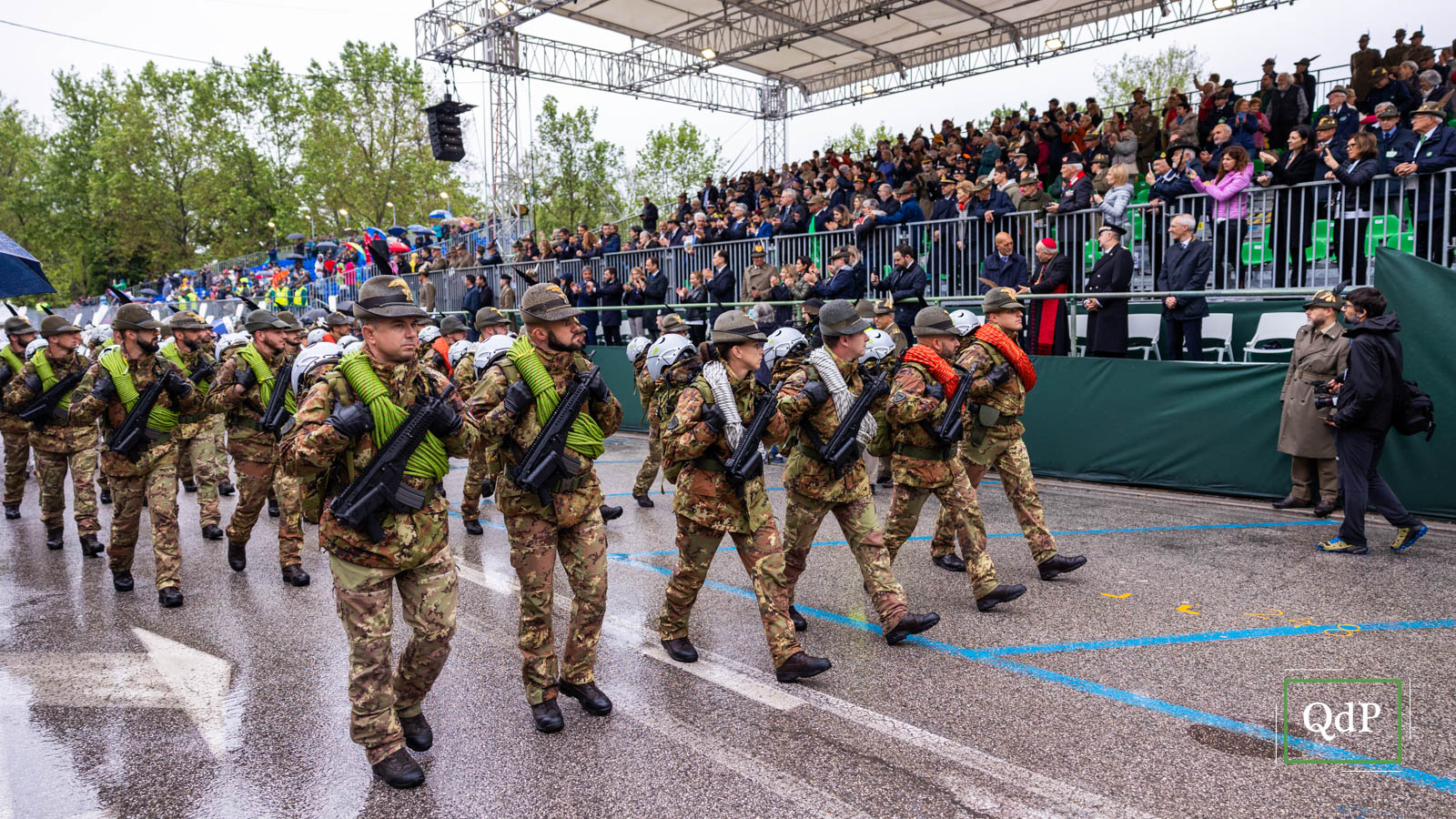 Per certi aspetti, quello descritto anche dai colori della piazza durante la sfilata è un domani che tende a esporre sempre meno armi da fuoco e uniformi mimetiche ma che al contrario esalta e sottolinea l’importanza della Protezione civile, delle Unità Cinofili, delle altre associazioni, come le bande e i cori, quindi della cultura e della musica. Un futuro tollerante, che “allinea” uomo e donna prima e durante la sfilata, aperto – anzi – spalancato ad altre nazionalità europee e non solo.