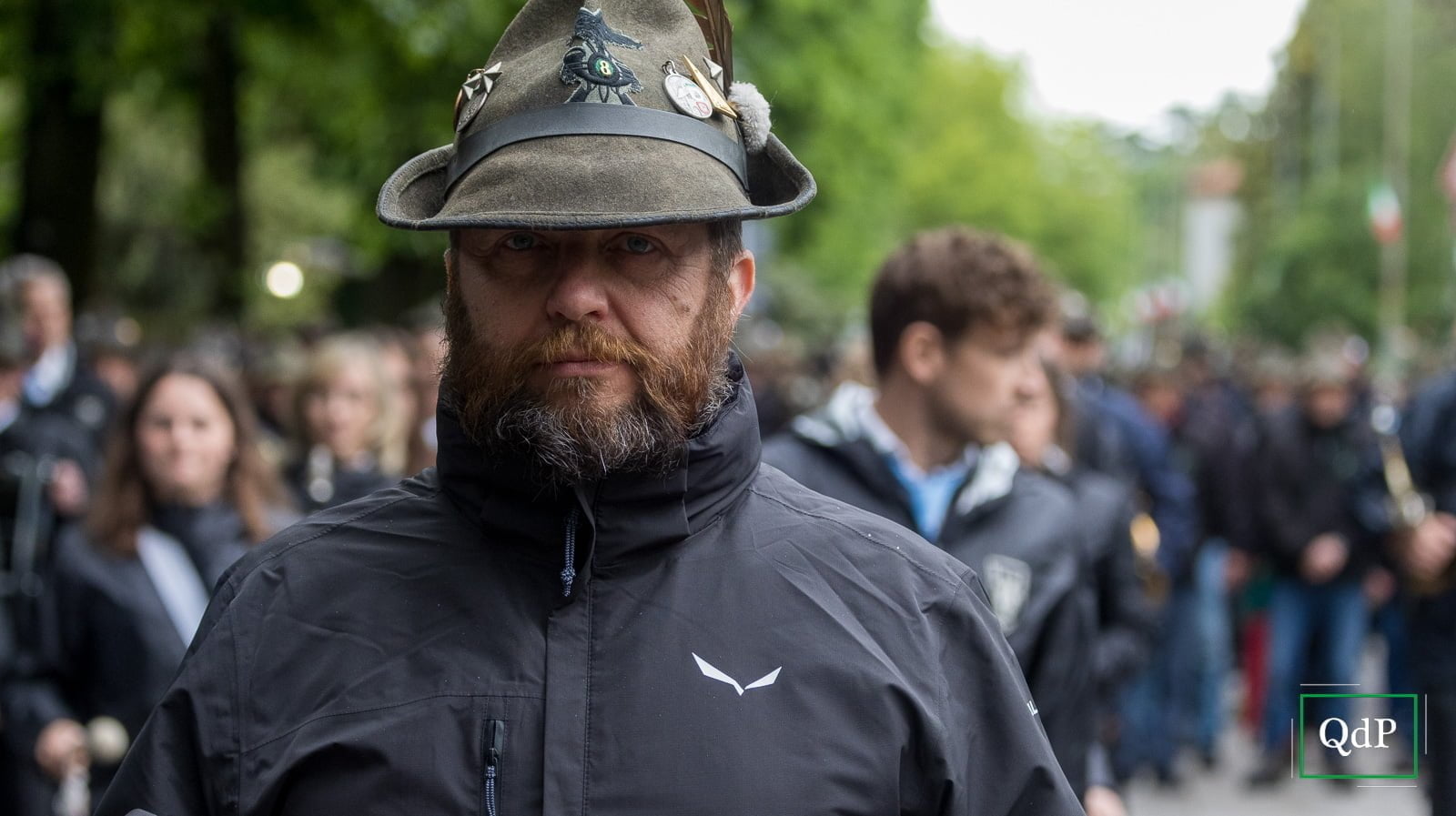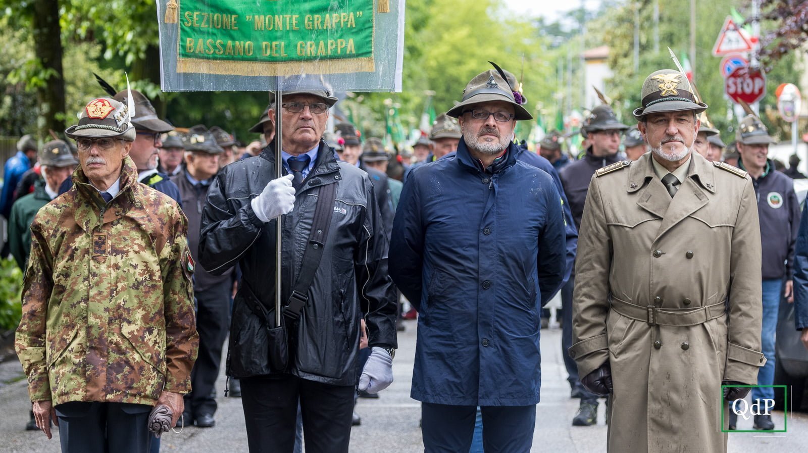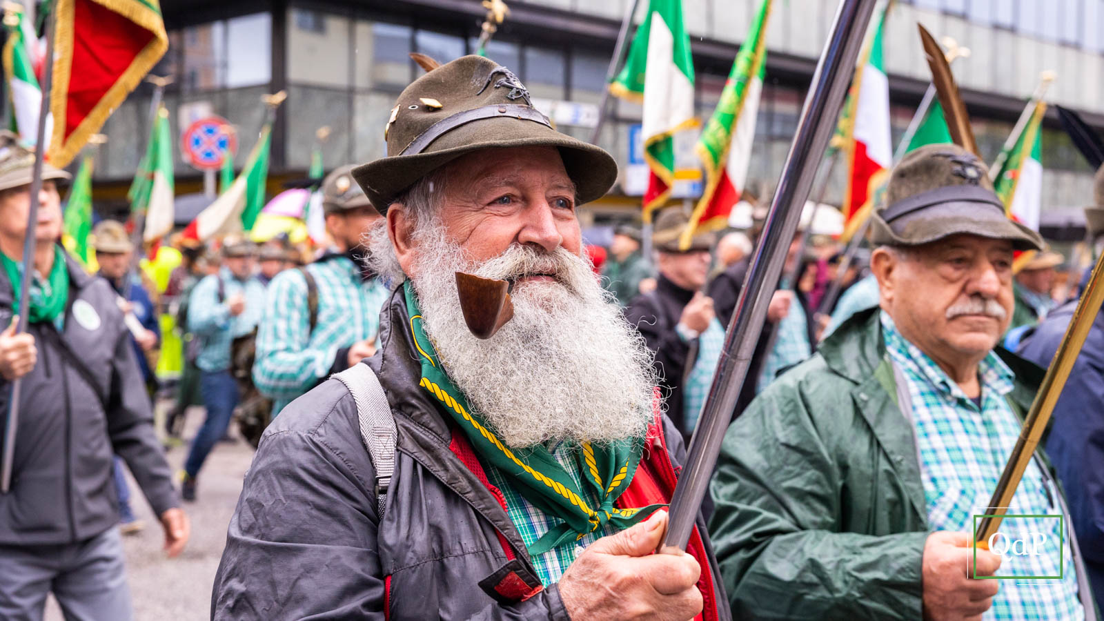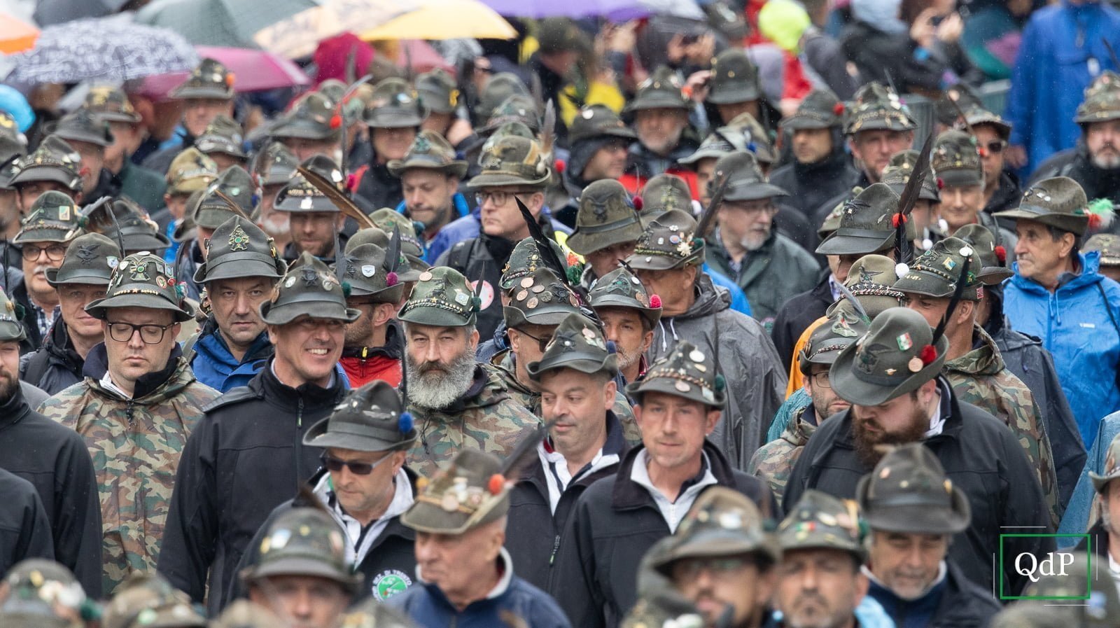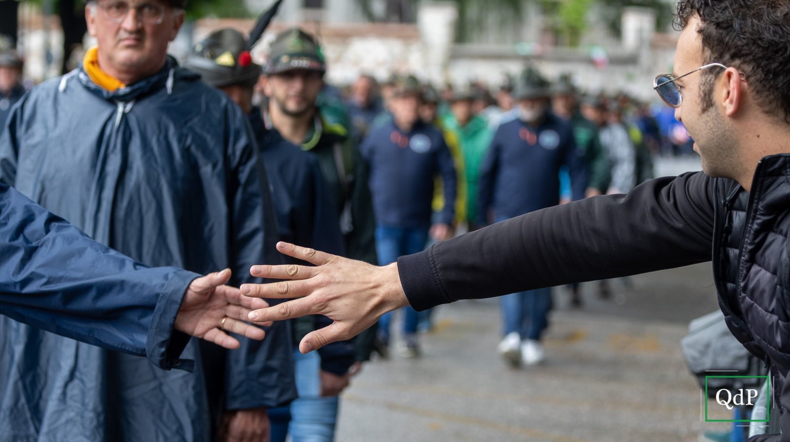 Una situazione che vissuta nel presente appare allucinante e costrittiva, ma ricordata con i compagni decenni più tardi diventa in qualche modo un ricordo felice. “È a queste cose qui che serve l’Adunata – ci spiega un alpino anziano che, in sedia a rotelle, con un telo a coprirgli petto e le gambe, ci sorride sotto la pioggia. – a parlare di quelle cose lì che abbiam fatto fatica a fare, ma che insieme alla fine abbiamo fatto”.