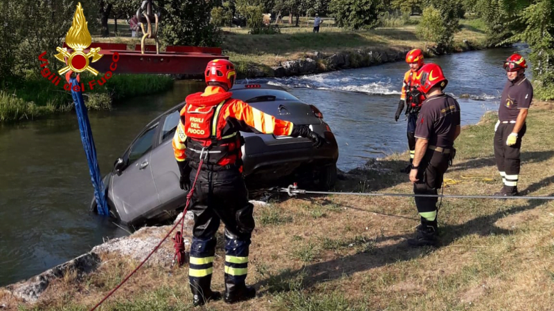 L’auto era stata collocata poco prima del fatto nel posteggio antistante il fiume e, probabilmente, per la mancata tenuta del freno di stazionamento si è mossa, finendo in acqua.