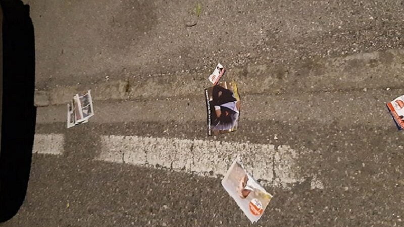 A raccontare il fatto è lo stesso Biz: “Quando sono uscito di casa ho trovato i volantini strappati – afferma – sono rimasto molto sorpreso, mai avrei pensato che qualcuno potesse ridursi a tanto. Diciamo che è un gesto che si commenta da solo e che ritengo abbastanza grave“.