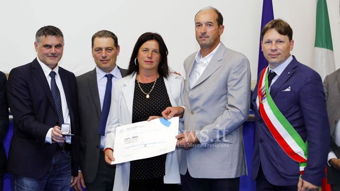 Una società agricola a conduzione tutta famigliare la “Francesco Grillo e C.”, che venerdì 25 maggio, a Treviso, ha ritirato il premio (nella foto) della Fedeltà al Lavoro e del Progresso Economico indetto dalla Camera di commercio, accompagnata dal sindaco Alessandro Biz e dal vice sindaco Roberto Campagna.