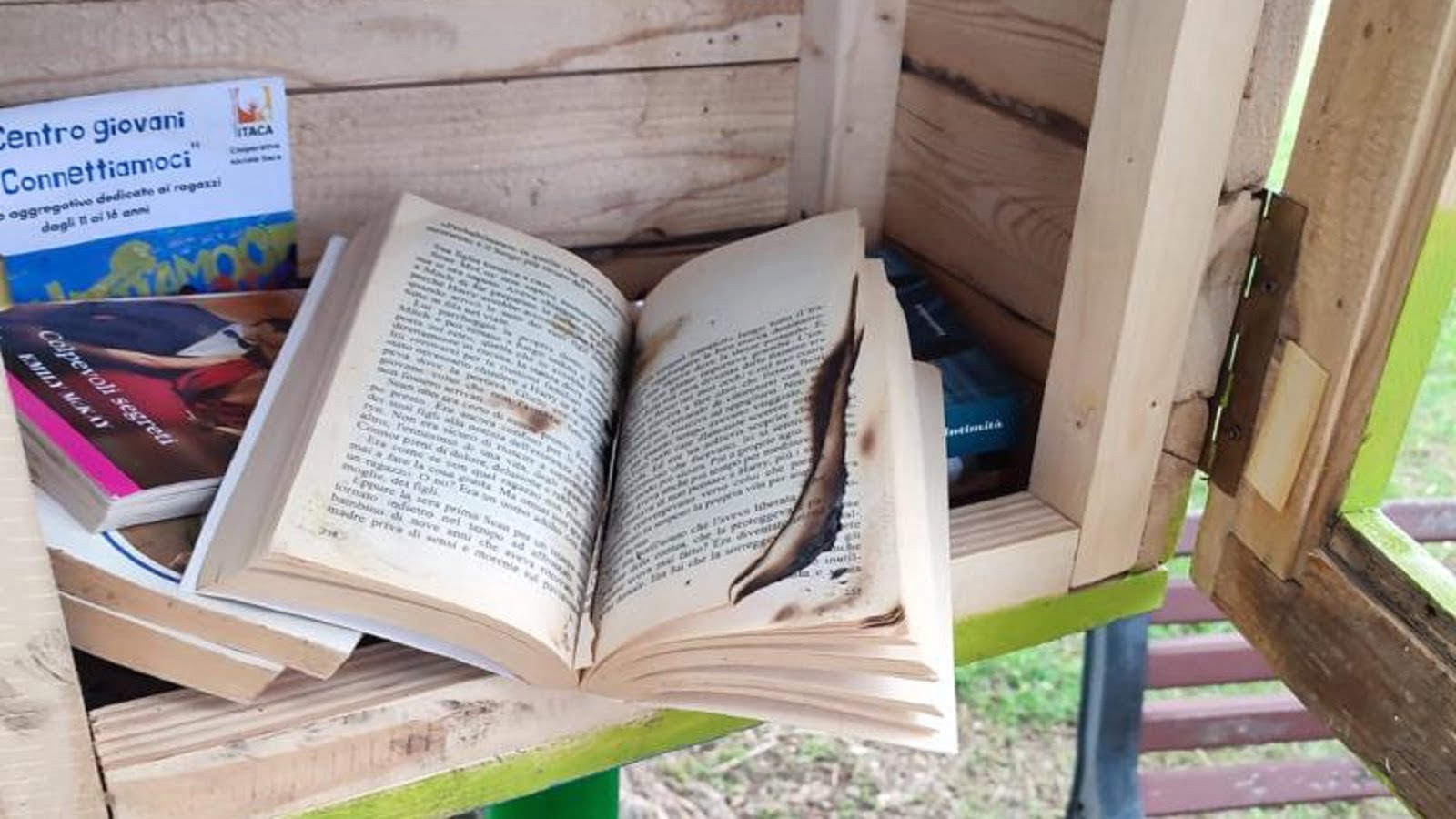 La casetta, posizionata il 14 luglio scorso in Strada Masut vicino alla scuola dell’infanzia “Piero della Valentina”, conteneva dei libri. L’obiettivo del progetto comunale, realizzato dai giovani del territorio, è favorire la lettura nella comunità locale. Nella settimana di Ferragosto la casetta è stata resa inutilizzabile e i libri che conteneva sono stati in parte bruciati.