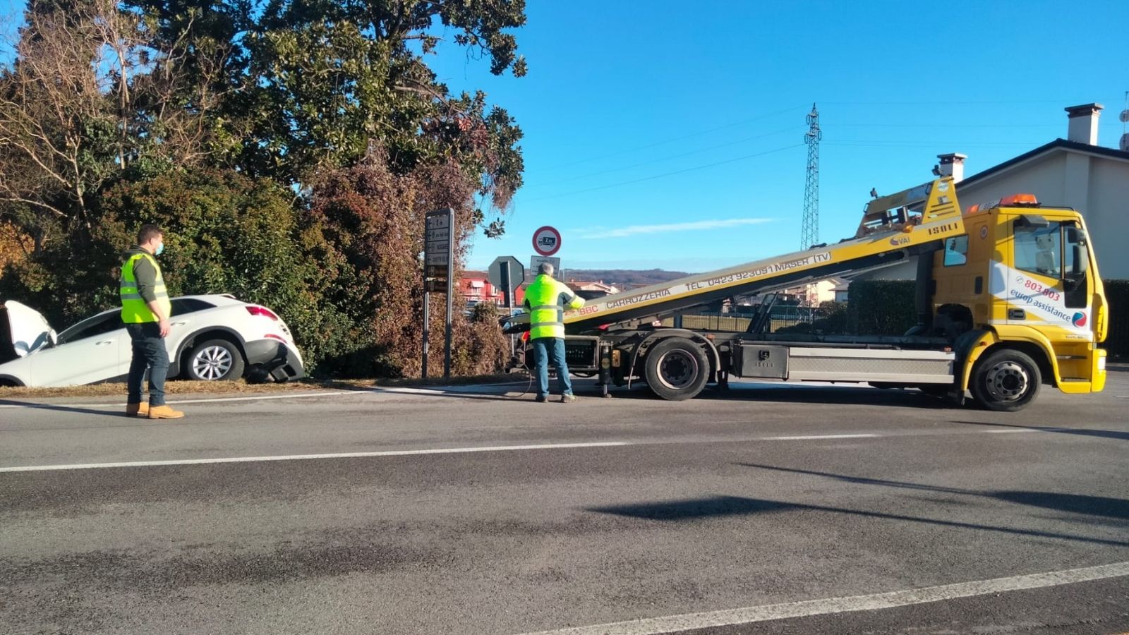 Sono intervenuti sul posto anche la Polizia stradale di Castelfranco Veneto e il carro attrezzi per rimuovere l’auto rimasta incastrata.