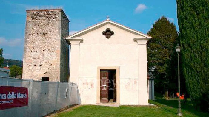 La piccola chiesa campestre dedicata a Santa Maria ad Nives (nella foto sopra) è l’esito della somma di interventi di epoche diverse, dall’alto Medioevo al primo Novecento, a testimoniare l’importanza di questo piccolo sito nella devozione popolare locale. L’edificio è stato di recente oggetto di un corposo restauro che ha svelato commoventi tracce della presenza di soldati durante la Grande Guerra e uno straordinario ciclo di affreschi risalente all’inizio del XIV secolo, un nuovo e significativo tassello nel ricco percorso della cultura figurativa di questa fascia pedemontana, e non solo.