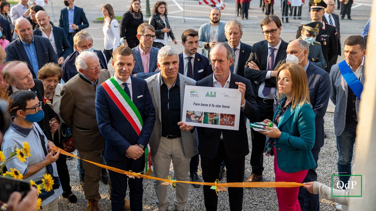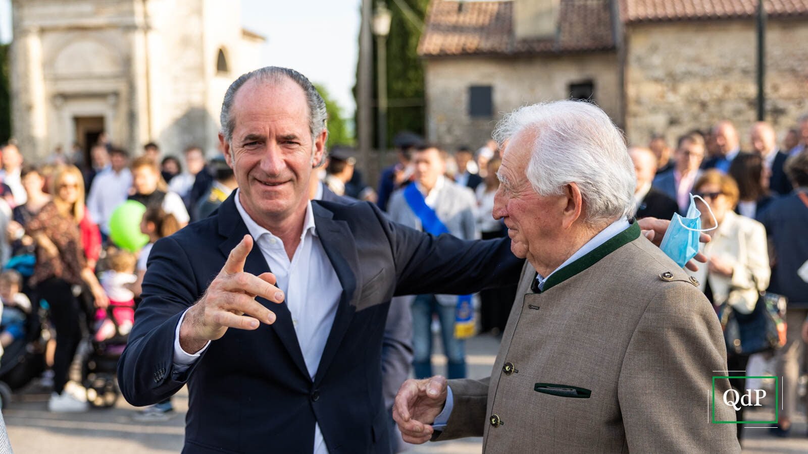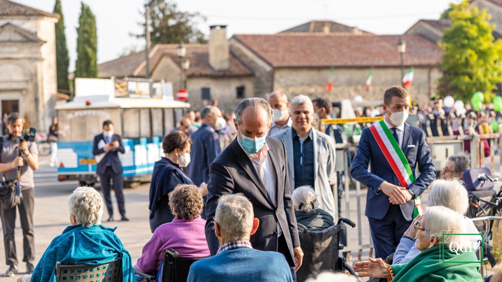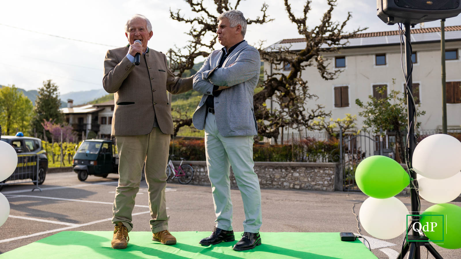 Palloncini verdi e bianchi in piazza Rovere a Col San Martino, la banda di Moriago della Battaglia schierata con le uniformi rosse e gli strumenti ben lucidati, i bambini irrequieti che attendono il momento giusto per iniziare a cantare l’Inno di Mameli. Poco più in là, anche gli ospiti della casa di riposo Botteselle attendono l’inizio delle celebrazioni, seduti in cortile. Ai margini della provinciale si incontrano sindaci, assessori e autorità del territorio, oltre al presidente della Regione Luca Zaia, che presenzia alla Mostra del Valdobbiadene Docg dal ‘95.