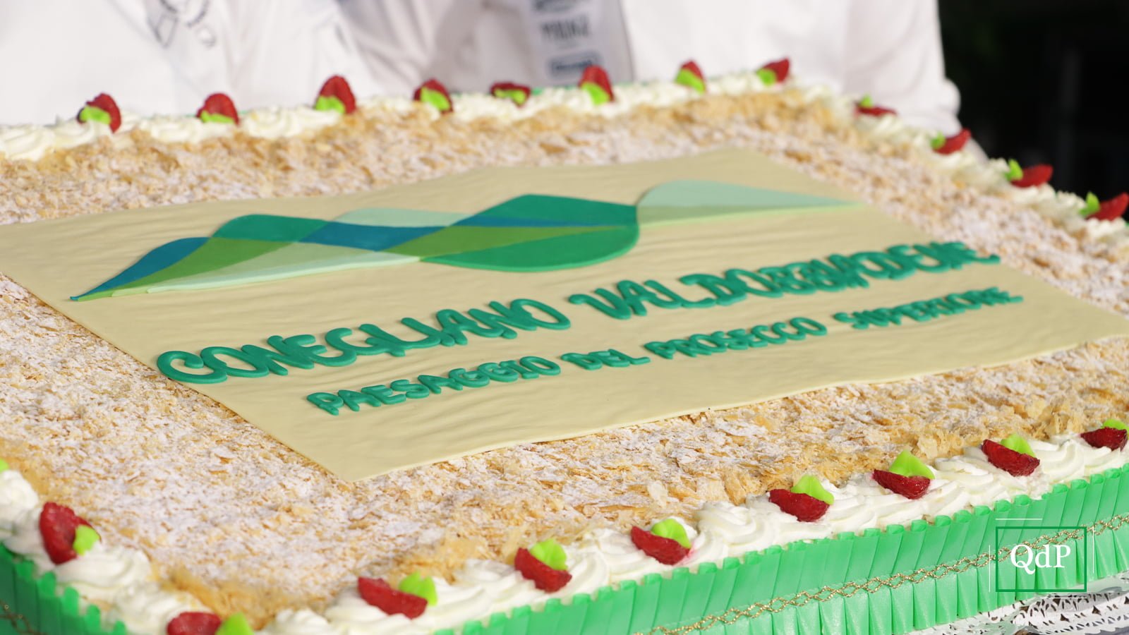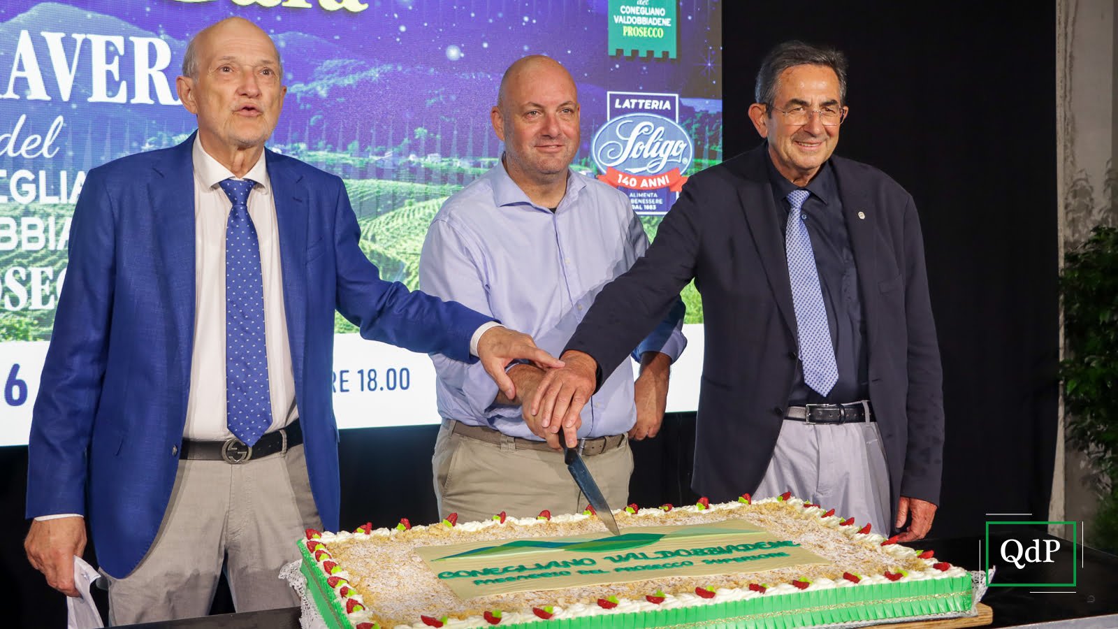 Chiusura della serata in dolcezza con l’Associazione per il Patrimonio delle Colline del Prosecco di Conegliano e Valdobbiadene e il taglio della torta che ha festeggiato il quinto anniversario dalla nomina delle nostre Colline a Patrimonio dell’Umanità Unesco.