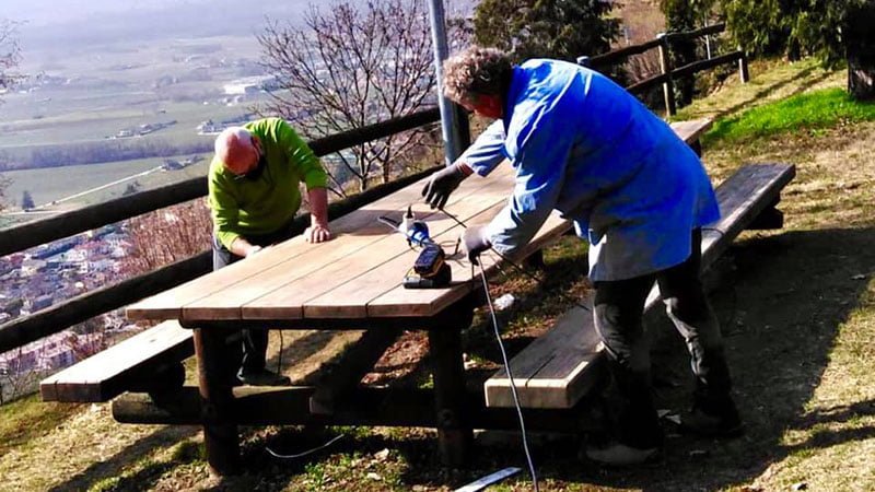 Un lavoro prezioso quello che è stato svolto dai volontari guidati dal presidente Enrico Nardi, che hanno provveduto alla sistemazione delle tavole e delle panche mediante la loro piallatura e riverniciatura.