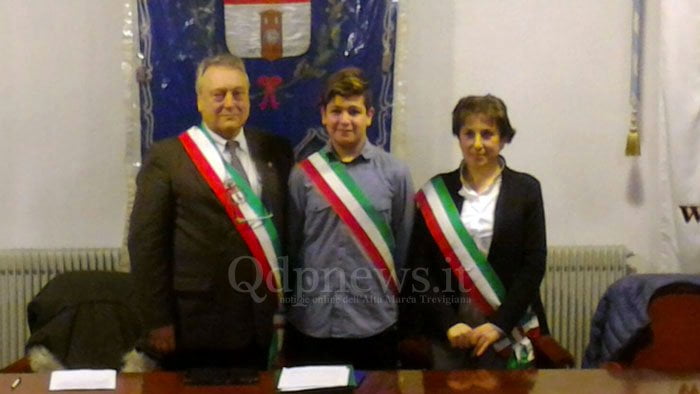 Ecco la composizione dell’intero consiglio: Antonino Guaietta (sindaco, nella foto in alto con i “colleghi” più grandi), Emma D’Agostin (vice sindaco e assessore all’associazionismo), Arianna Possamai (assessore all’ambiente e turismo), Michele Floriani (assessore allo sport e tempo libero) Ludovica Pizzin (assessore alla cultura e all’istruzione).