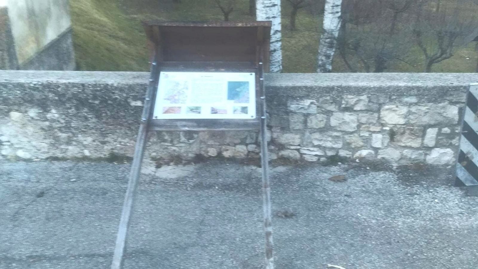 Follina, cinque vandali abbattono un cartello turistico sulla Fiadora e buttano giù le fioriere dal ponte. Zanta: “Denunceremo, la misura è colma”