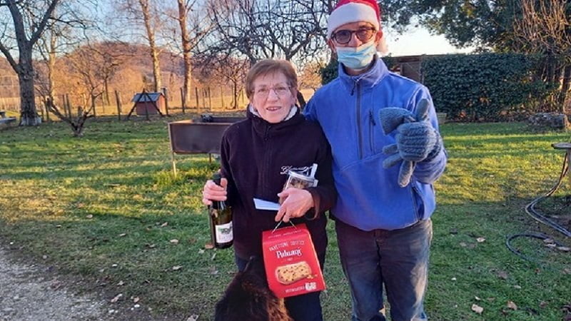 Nei giorni scorsi due volontari del comitato hanno suonato ai campanelli delle abitazioni degli anziani delle tre frazioni e consegnato loro il tipico dolce natalizio accompagnato da una bottiglia di bollicine.