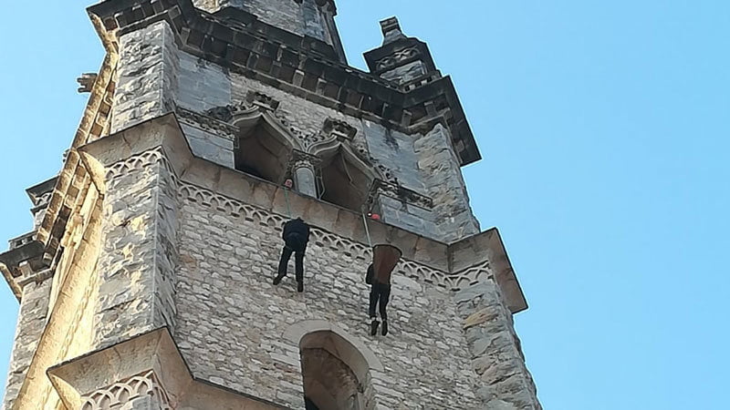Il parroco è sceso in abbinata con uno scalatore della Sportler, in assoluta sicurezza, e la sua performance ha riscosso i complimenti di tutti i parrocchiani presenti.