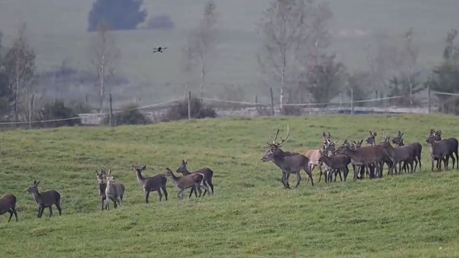 Questa mattina, mercoledì 18, il fotografo naturalista Giuseppe Zoppè, probabilmente avvolto in una rete mimetica o comunque in una posizione discreta rispetto agli ungulati, ha immortalato proprio questa scena. Possiamo immaginare come il ronzio di un drone, capace di spaventare anche noi, possa terrorizzare un animale selvatico, specie se inseguito da ombra per centinaia di chilometri.