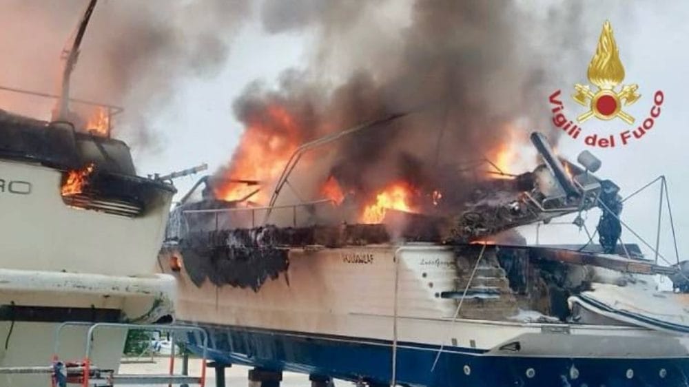 Incendio in corso a Marina di Cavallino: coinvolte due imbarcazioni da circa 15 metri ormeggiate in porto.