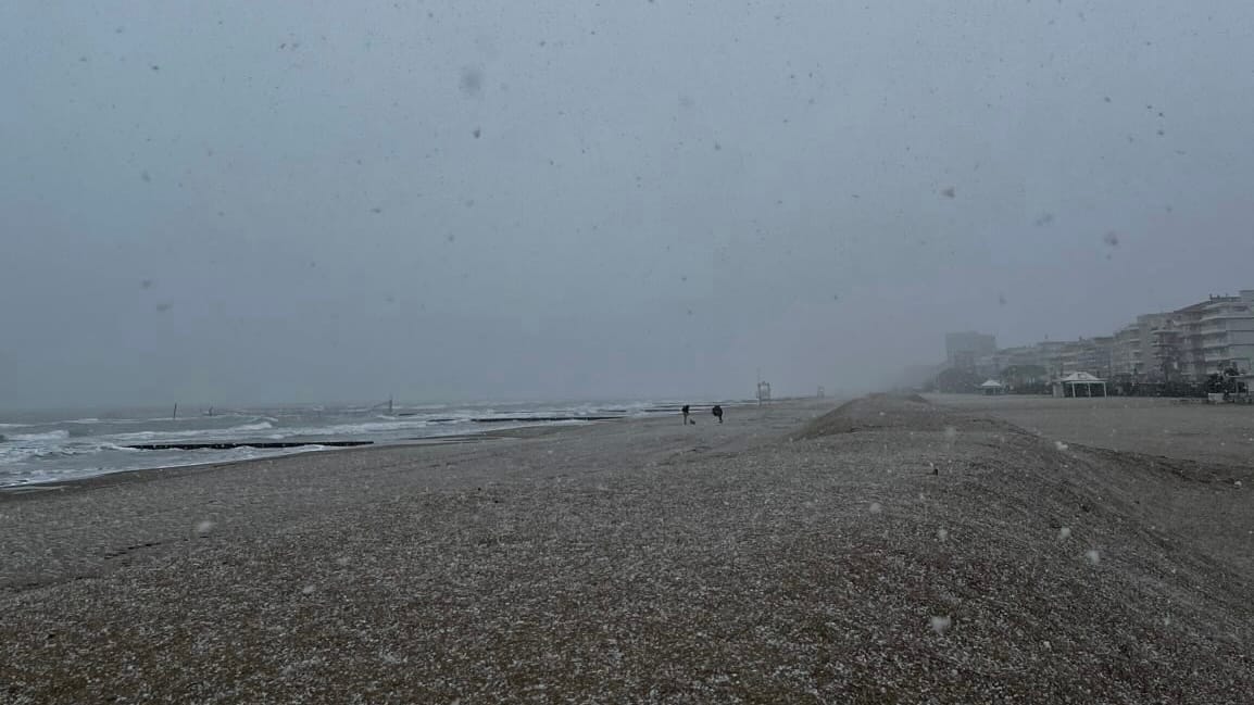 La nevicata, iniziata in mattinata, prosegue in modo debole e intermittente, attirando sguardi e fotografie. Un episodio suggestivo, capace di regalare stupore e di chiudere le festività con un’immagine insolita per una località di mare.