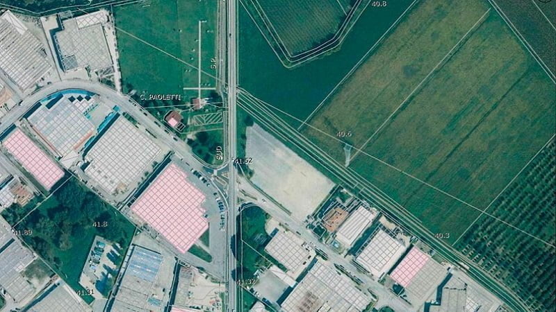 La superficie dell’area messa all’asta è di 6458 metri quadri. Il terreno risulta essere edificabile, asfaltato e completamente recintato. L’intero bene ricade nella zona D1.1 ed è quindi inquadrato come zona industriale, artigianale Ampliabile di Completamento. L’area non è sottoposta a vincoli salvo la servitù di elettrodotto per il passaggio di una linea Enel da 380Kw posta a nord dell’area.