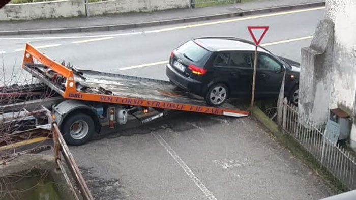 Benché il conducente non abbia riportato alcuna ferita, il mezzo è stato prelevato dal soccorso stradale poiché si era infossato nel minuscolo giardino della casa, disabitata da diversi anni, ma costruita appena un metro sotto il livello della carreggiata.