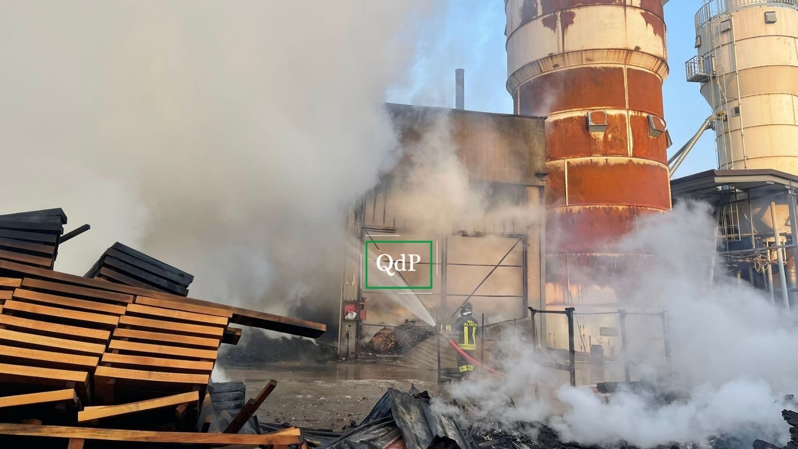 La strada è stata chiusa al traffico e anche da lontano è possibile distinguere una densa colonna di fumo bianco. Le operazioni di spegnimento dureranno verosimilmente tutta la giornata data la presenza di grandi quantitativi di legno.