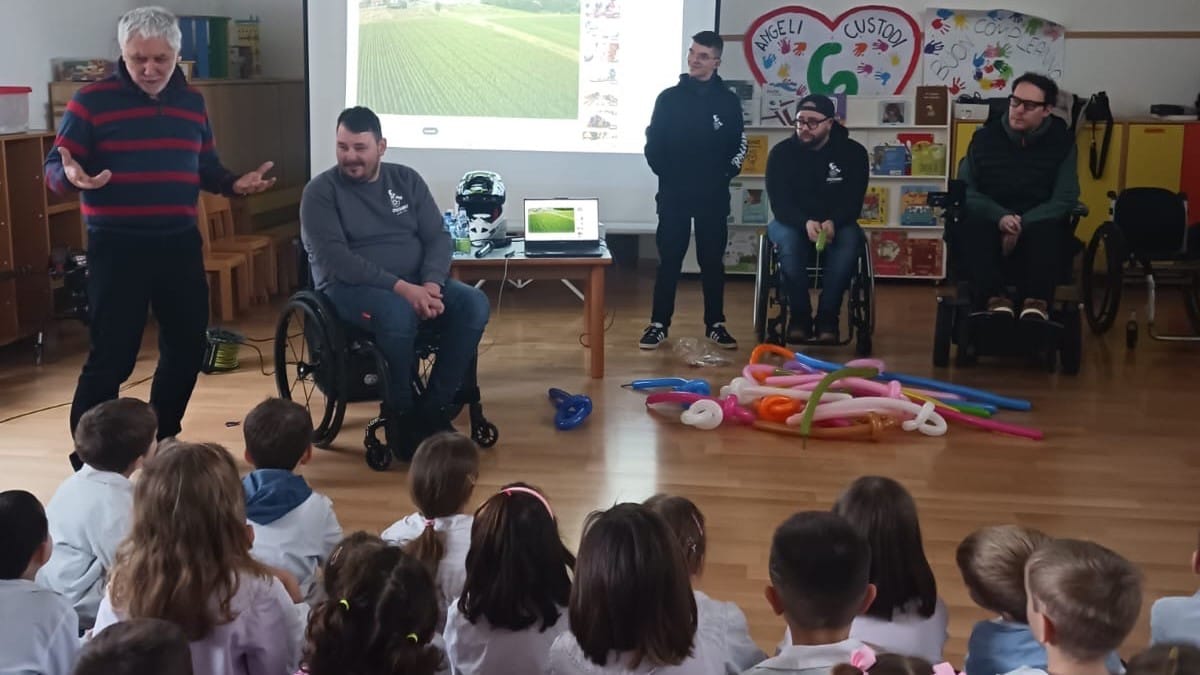 Quel desiderio ha trovato una prima risposta lunedì, quando a scuola è arrivato Mattia insieme ad alcuni amici dell’associazione. Non è stato un incontro formale ma un tempo semplice e vero, fatto di sguardi curiosi, domande spontanee e giochi condivisi. I bambini si sono avvicinati senza timore, raccontando ciò che avevano realizzato per loro. “Abbiamo provato le loro carrozzine, scoprendo quanto cambiano i movimenti e i punti di vista quando ci si sposta in modo diverso. È stata un’esperienza concreta, fatta di tentativi, sorrisi e piccoli stupori, che ha aiutato i bambini a comprendere con il corpo ciò che spesso si racconta solo a parole. Abbiamo anche ascoltato le loro storie di vita: racconti semplici, veri, a misura di bambino, che hanno parlato di sfide, di sogni, di sport, di amicizie e di quotidianità. I bambini hanno ascoltato in silenzio, facendo domande sincere e offrendo, a loro volta, pezzi della propria giornata. Così l’incontro si è trasformato in un momento di relazione autentica. Non c’erano differenze da spiegare, ma persone da conoscere. I bambini hanno scoperto che dietro a ogni volto c’è una storia e che l’amicizia può nascere anche da un semplice saluto o da un gioco fatto insieme”.