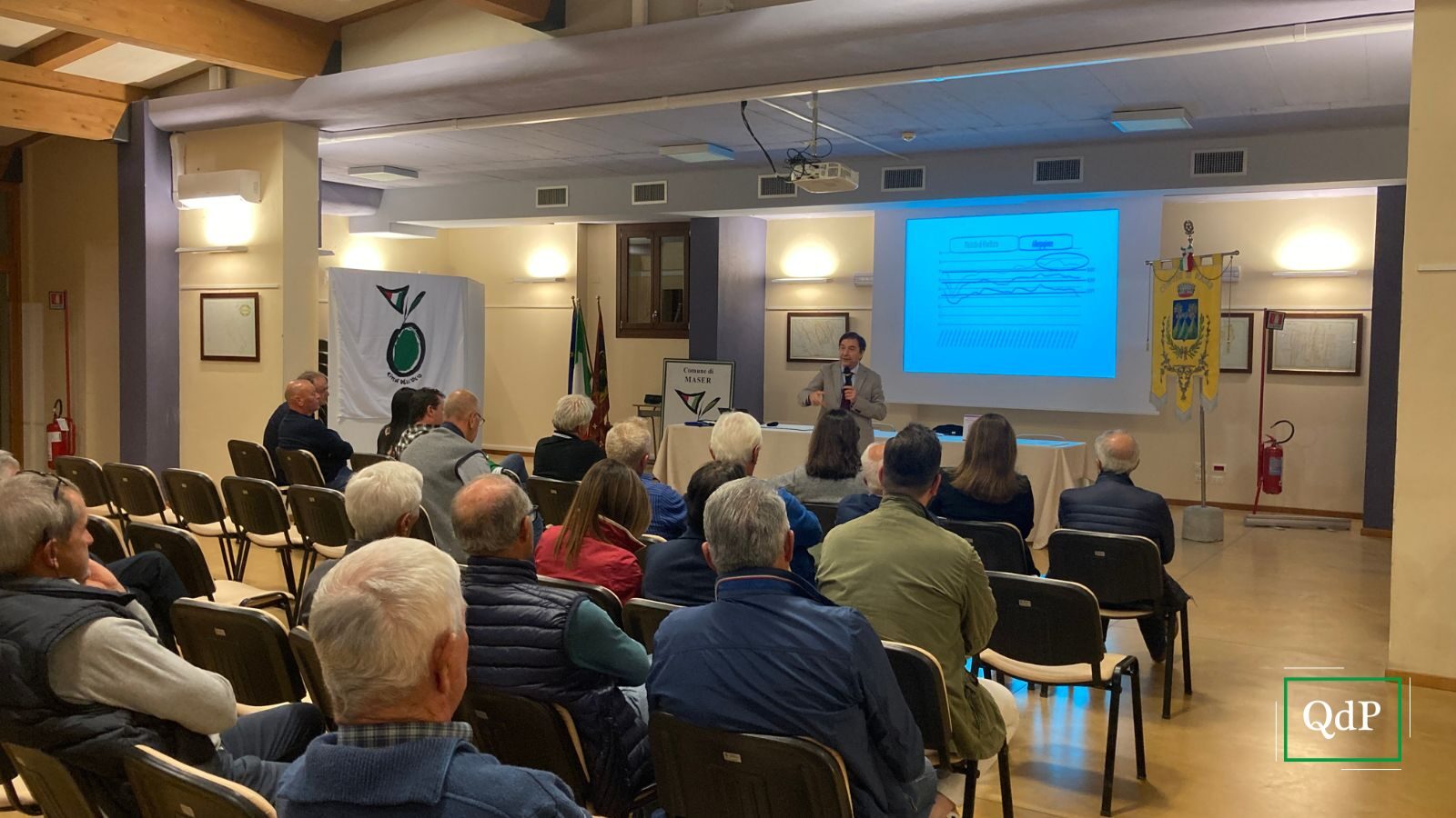 Per dare coraggio ai produttori di Maser, dopo aver dato la parola al sindaco Claudia Benedos per un saluto, il presidente della Proloco Claudio Crotti ha introdotto un esempio di successo in ambito olivicolo nel quale la qualità ha saputo “sostituire” la quantità e attirare l’attenzione degli acquirenti più esigenti oltreoceano: l’azienda di Monica Vaccarella, situata in Valpolicella, nel regno del vino, gode della caratteristica di aver saputo comunicare la propria qualità fino negli Emirati Arabi.