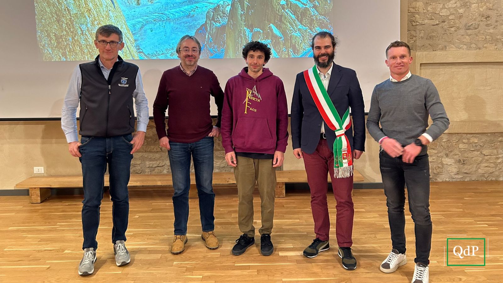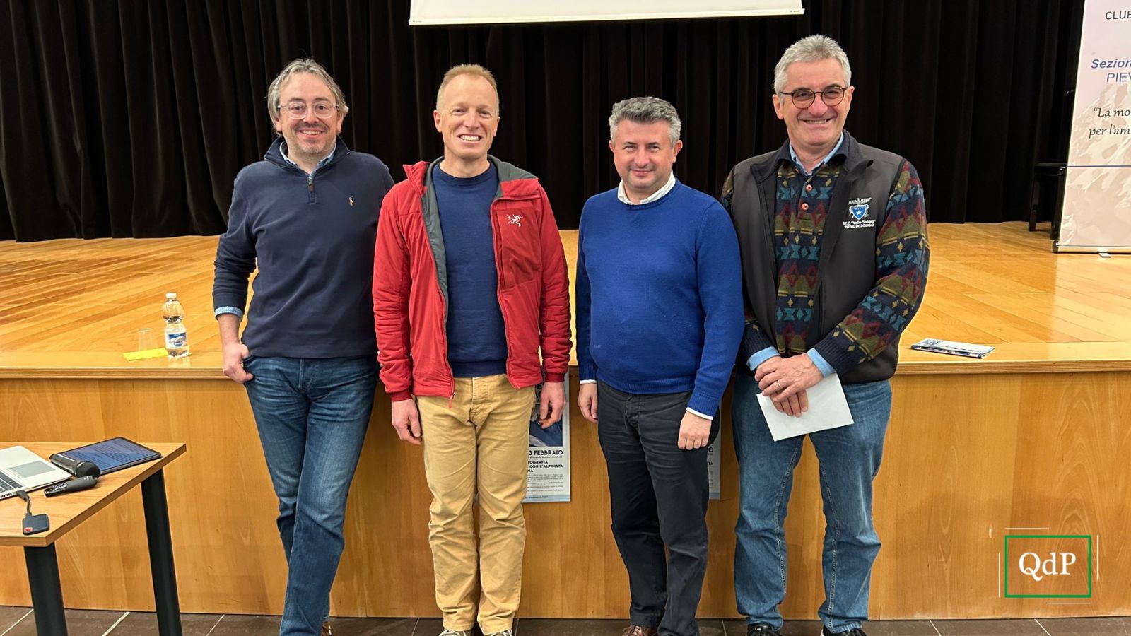 Dopo i saluti del sindaco Denny Buso e del presidente del Cai di Pieve di Soligo, Federico Trinca, sono stati proiettati i video e le foto delle avventure in alta quota di Larcher, che ha mosso i primi passi “verticali” all’età di dieci anni in palestra.