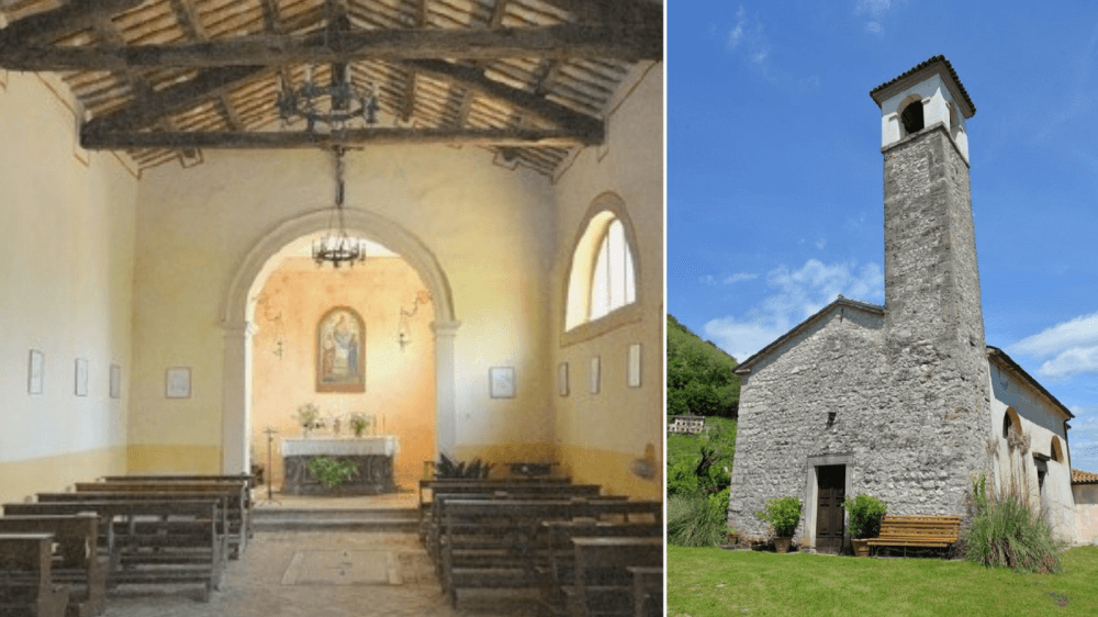 Durante l’anno dell’invasione di questi territori (novembre 1917 –ottobre 1918) da parte delle truppe austro-ungariche, la chiesa subì seri danni: fu demolita la parete ai lati dell’altare, distrutto l’altare, danneggiato il pavimento, e furono rotti i serramenti, le finestre ei vetri; gli austriaci trasformarono la chiesa prima in una stalla per cavalli e poi sala cinematografica per la truppa. In quel periodo venne asportata anche la campana del peso di 65 kg.