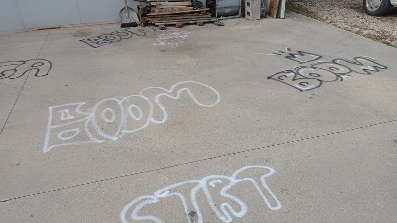 Si va da un pene gigante in centro al pavimento a diversi “BOOM”, per poi arrivare ad una dichiarazione d’amore ad una non meglio identificata “BABY” e diverse altre scritte anche sul coperchio delle manovre del gas e su tre bombole.